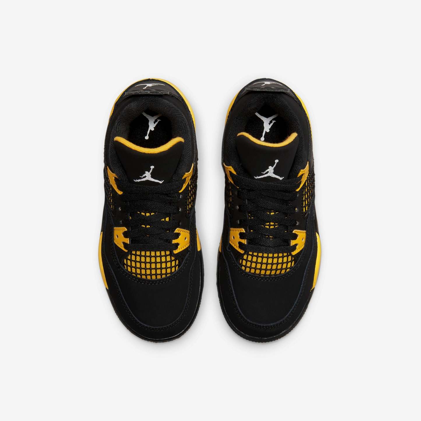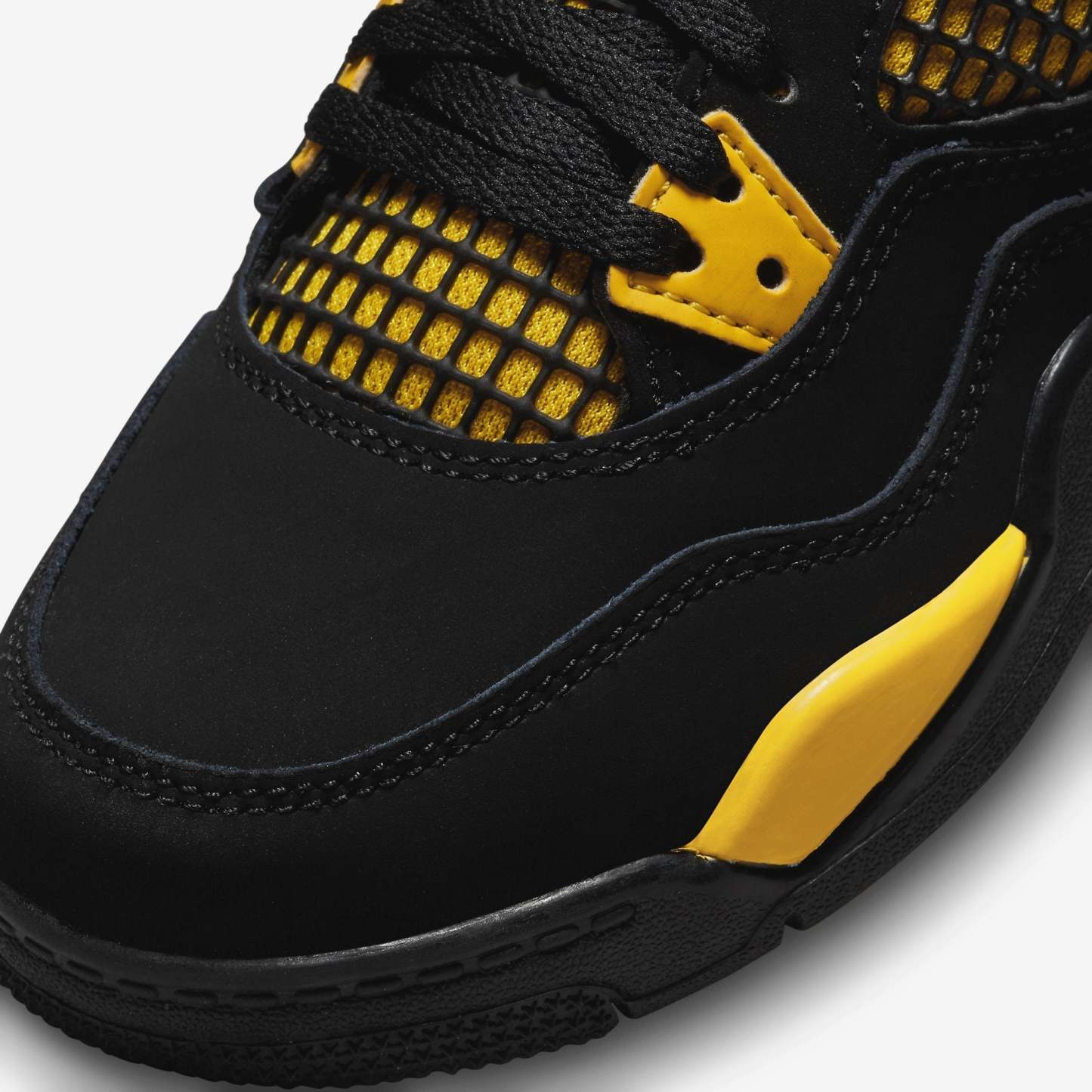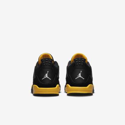 The Air Jordan 4 Retro 'Thunder' sports a sleek black nubuck upper accented with vibrant yellow details, delivering a bold and energetic aesthetic. This sneaker combines iconic design with modern comfort, featuring premium materials and responsive cushioning for a stylish, all-day wear experience. As a reimagining of a classic colorway, the 'Thunder' edition stands out in any collection, appealing to both sneakers enthusiasts and fans of the Jordan brand.