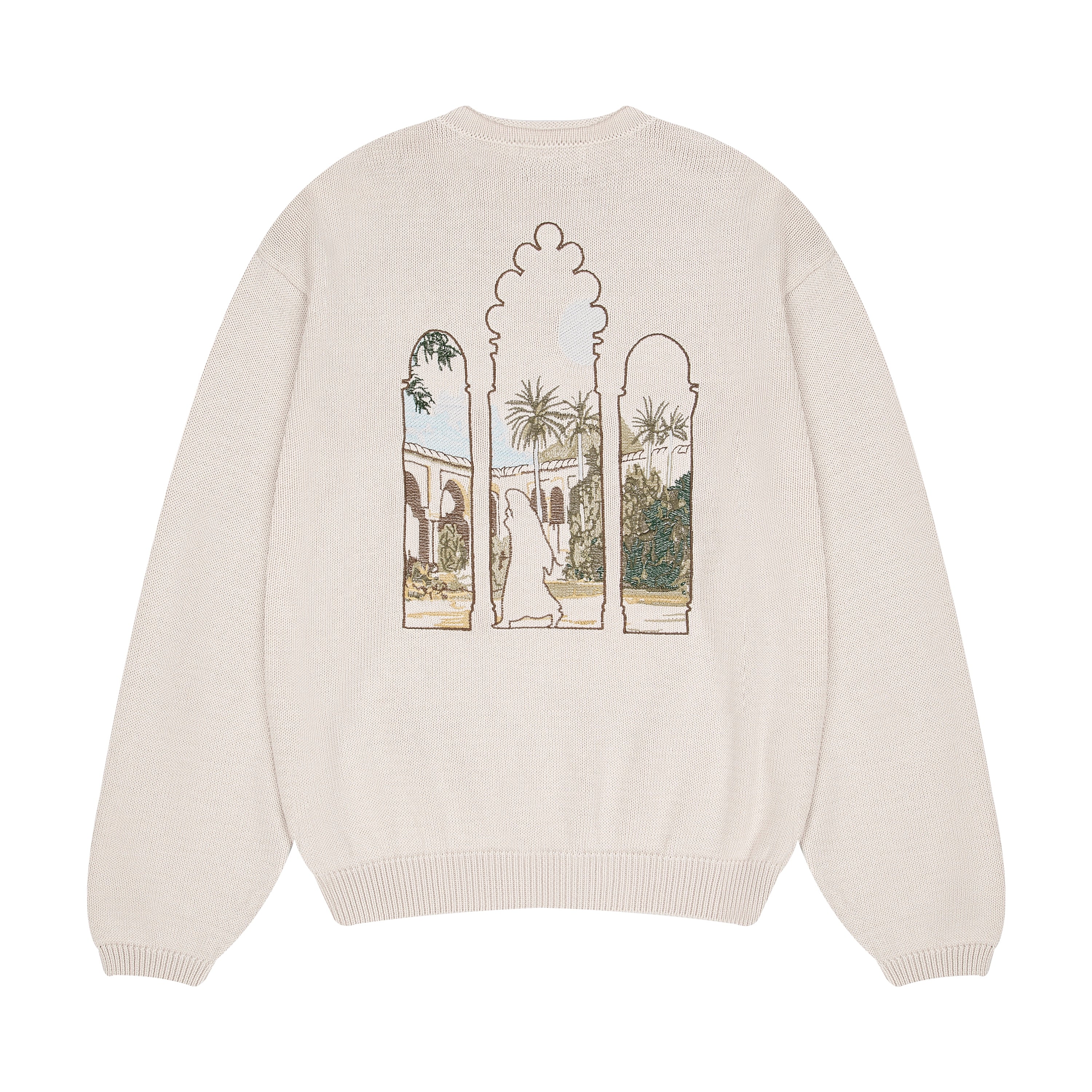 100% cotton / heavyweight knit / jacquard pattern on front / embroidery on back / fits true to size