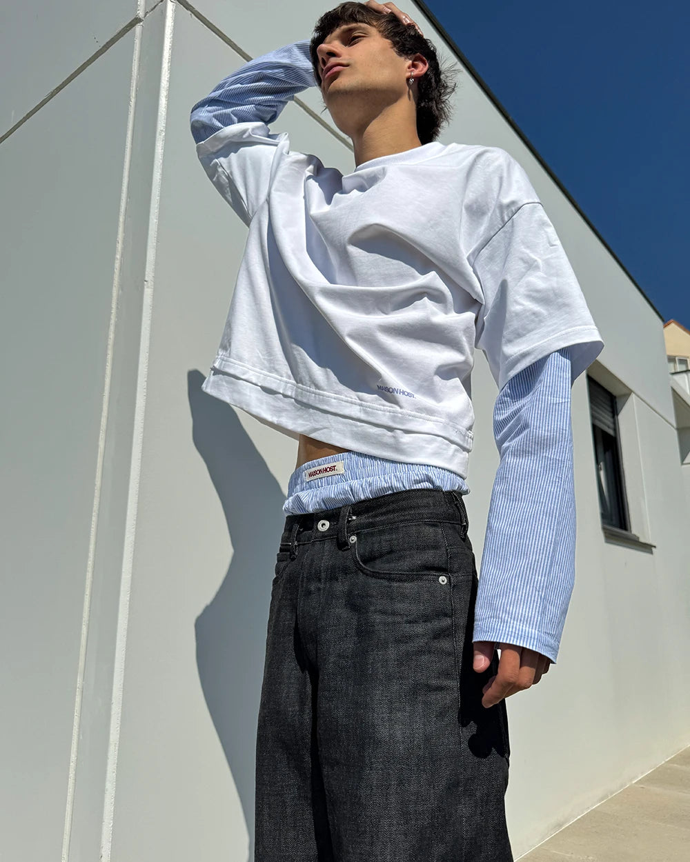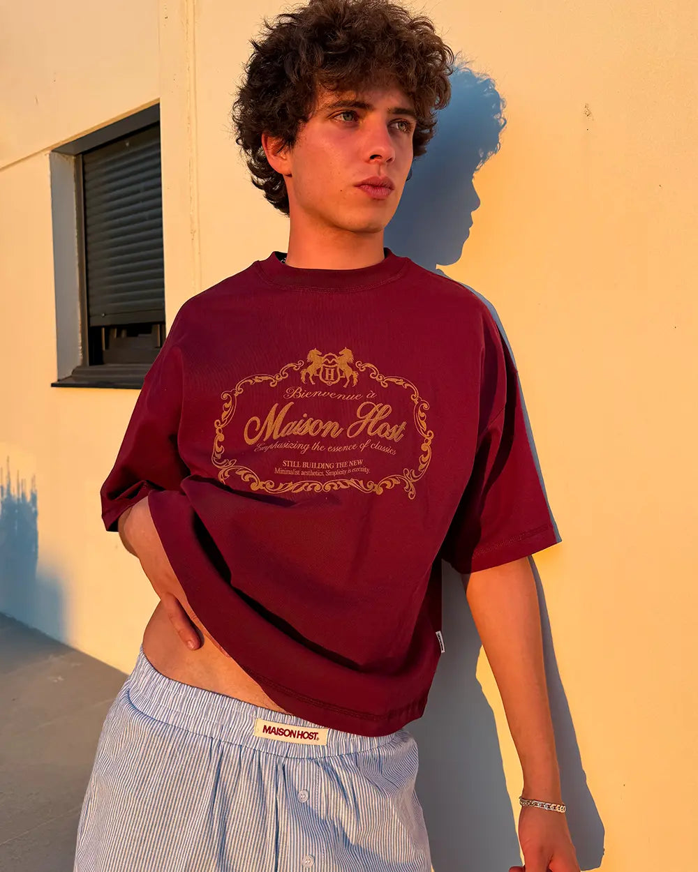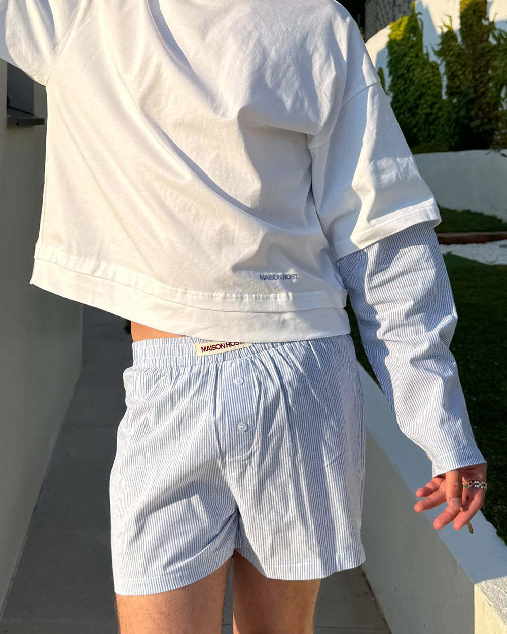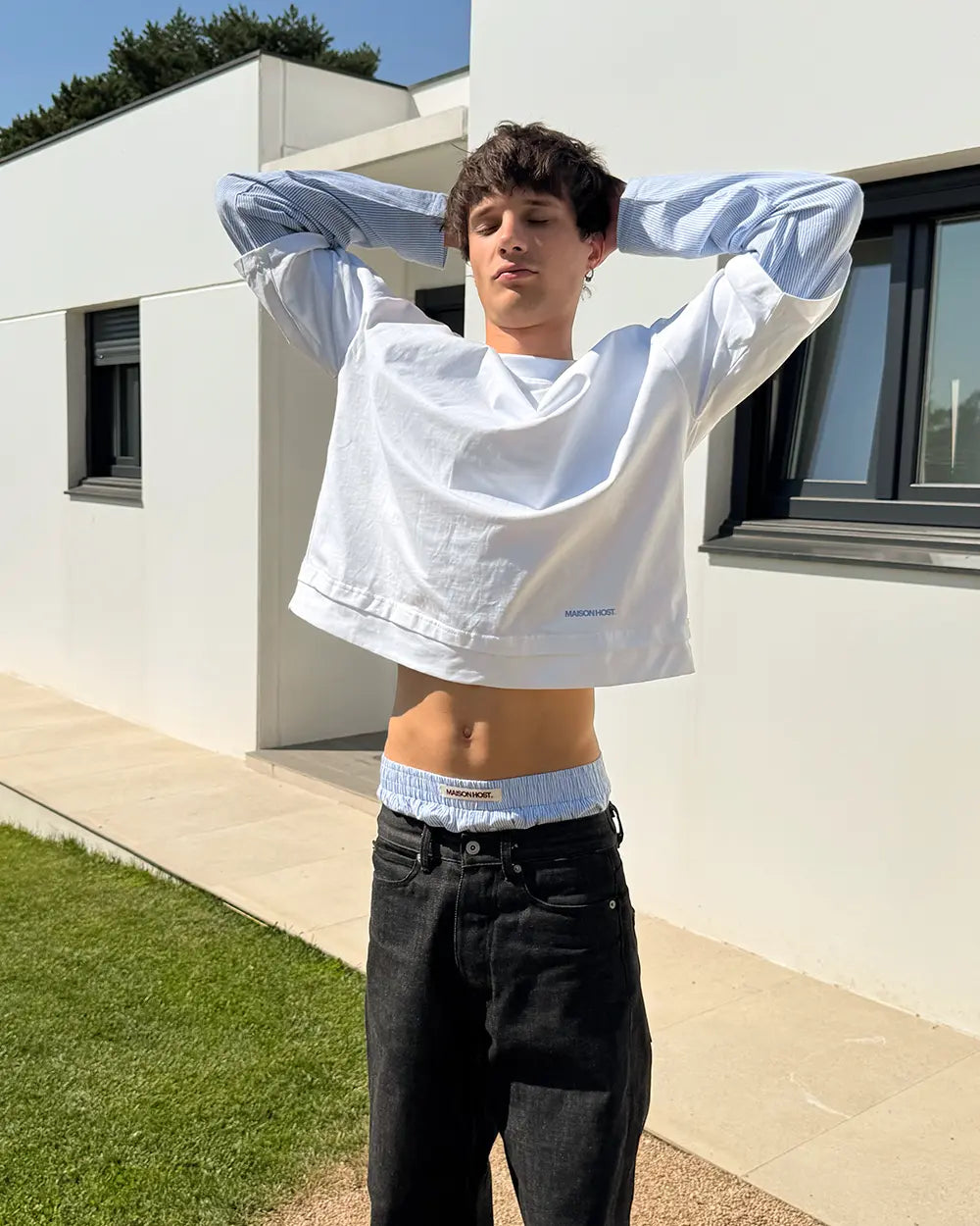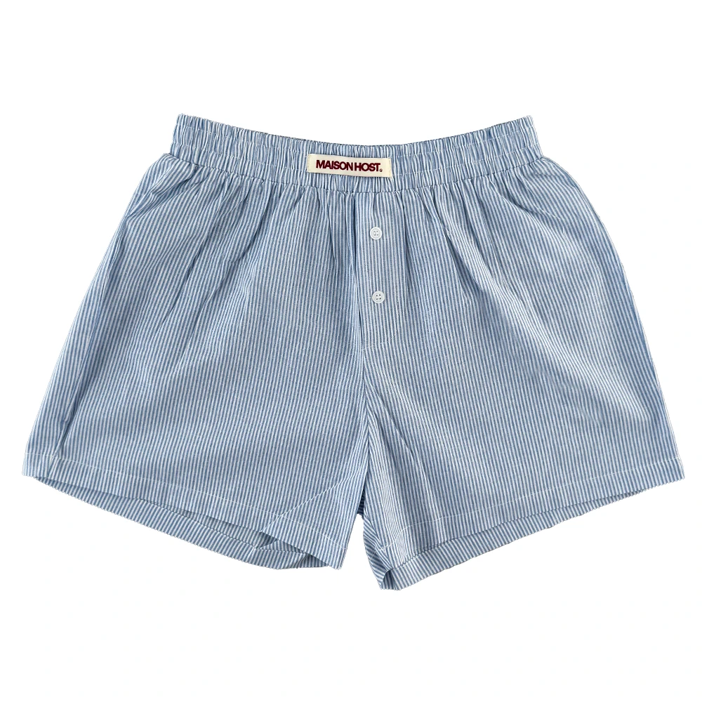 Features a button-fly front and an elastic waistband detailed with a woven MaisonHost® label at the center front.