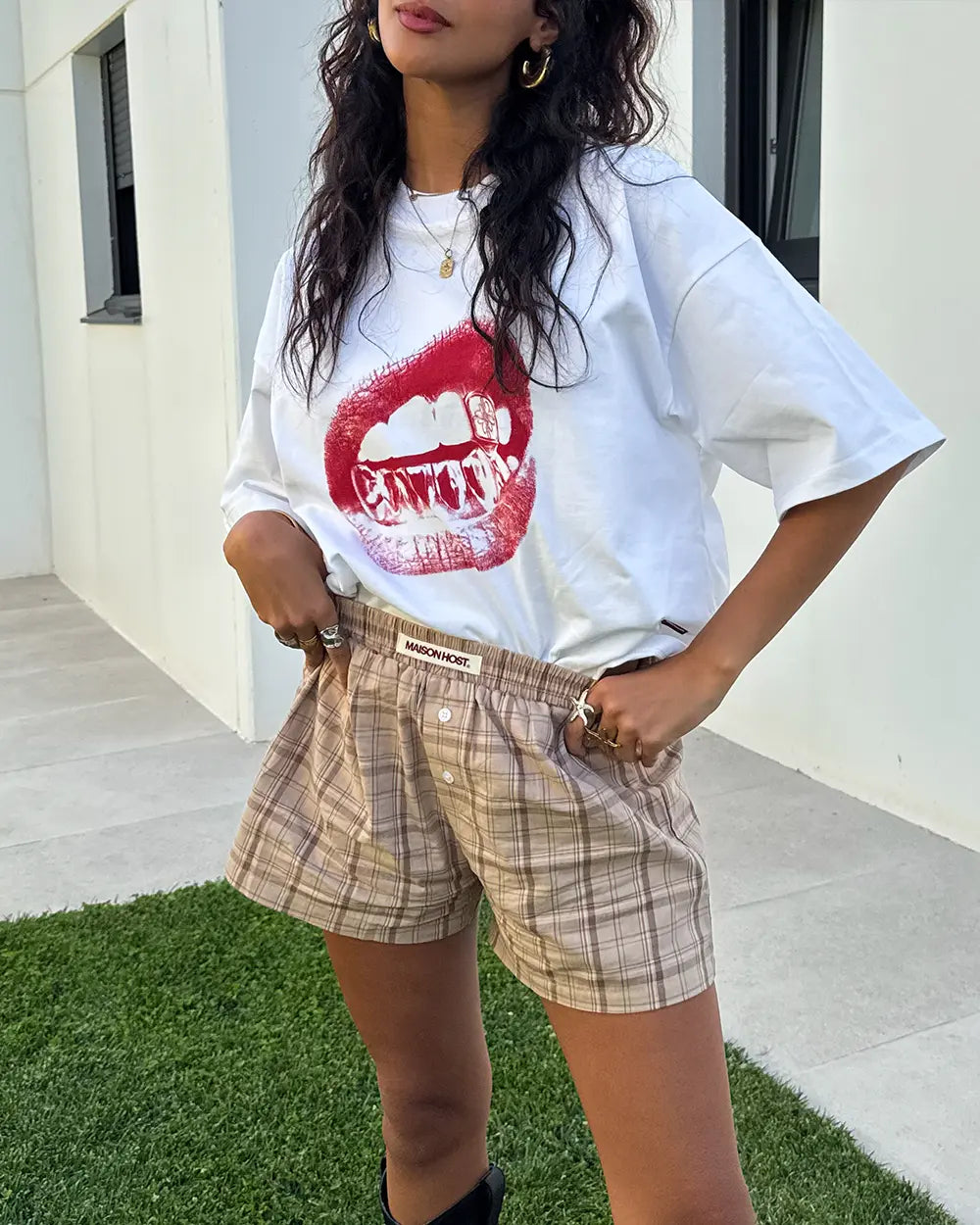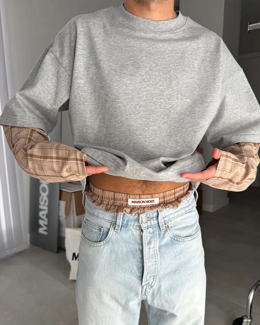 Features a button-fly front and an elastic waistband detailed with a woven MaisonHost® label at the center front.