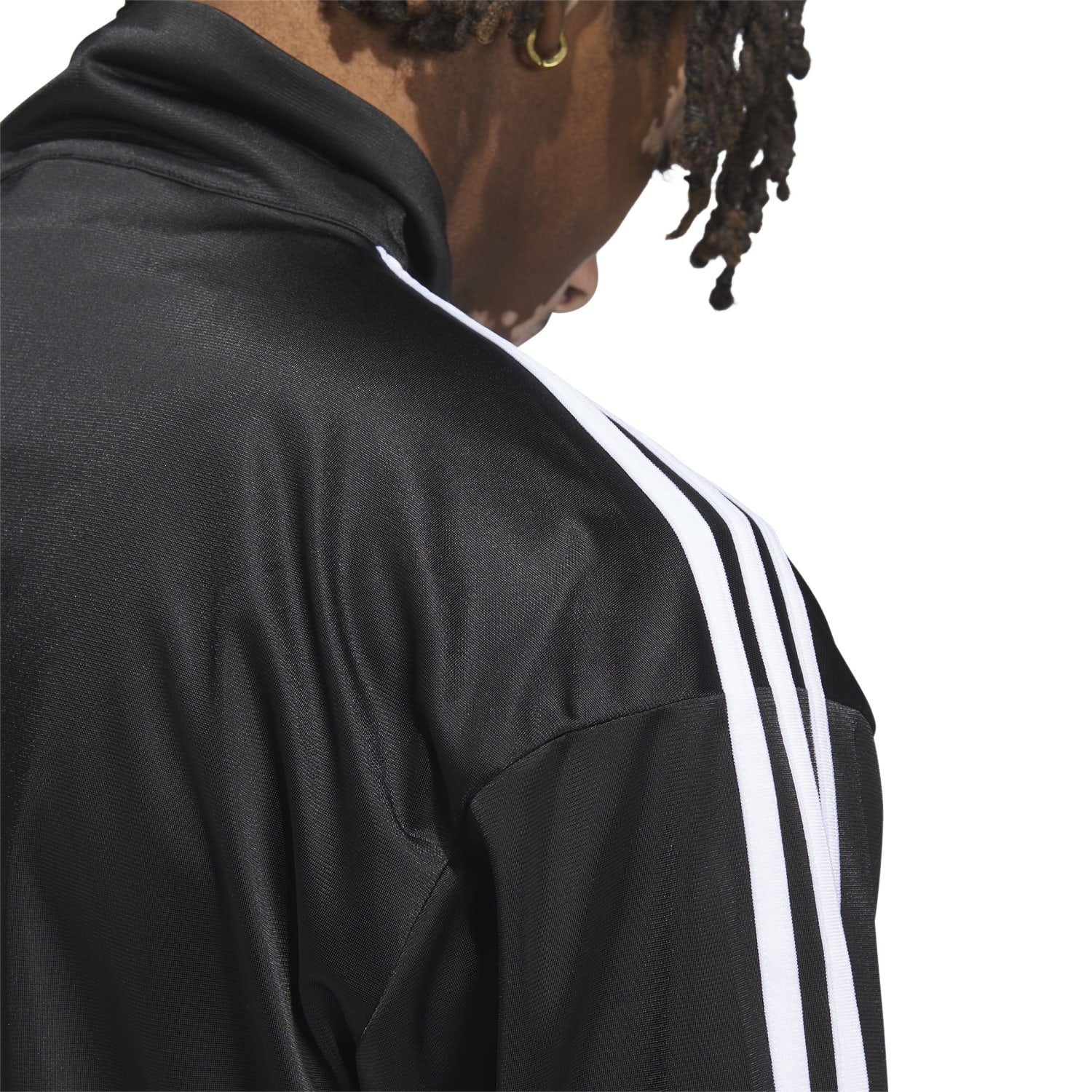 - Long-sleeved, track-style jacket.