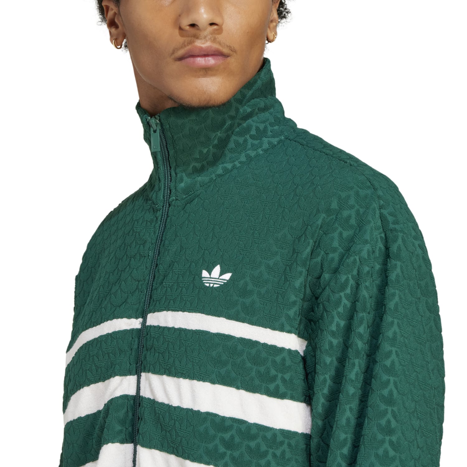 The adidas Monogram Men's Track Jacket has that classic look with a repetitive adidas pattern. Wear it with your favorite adidas tee underneath for a look that's suitable for those erratic weather days. Plus, the fit is a little loose, so you'll feel comfortable all day long.