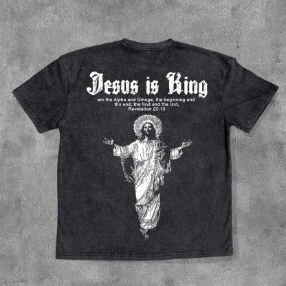 Jesus Is King Washed Distressed Short Sleeve T-Shirt