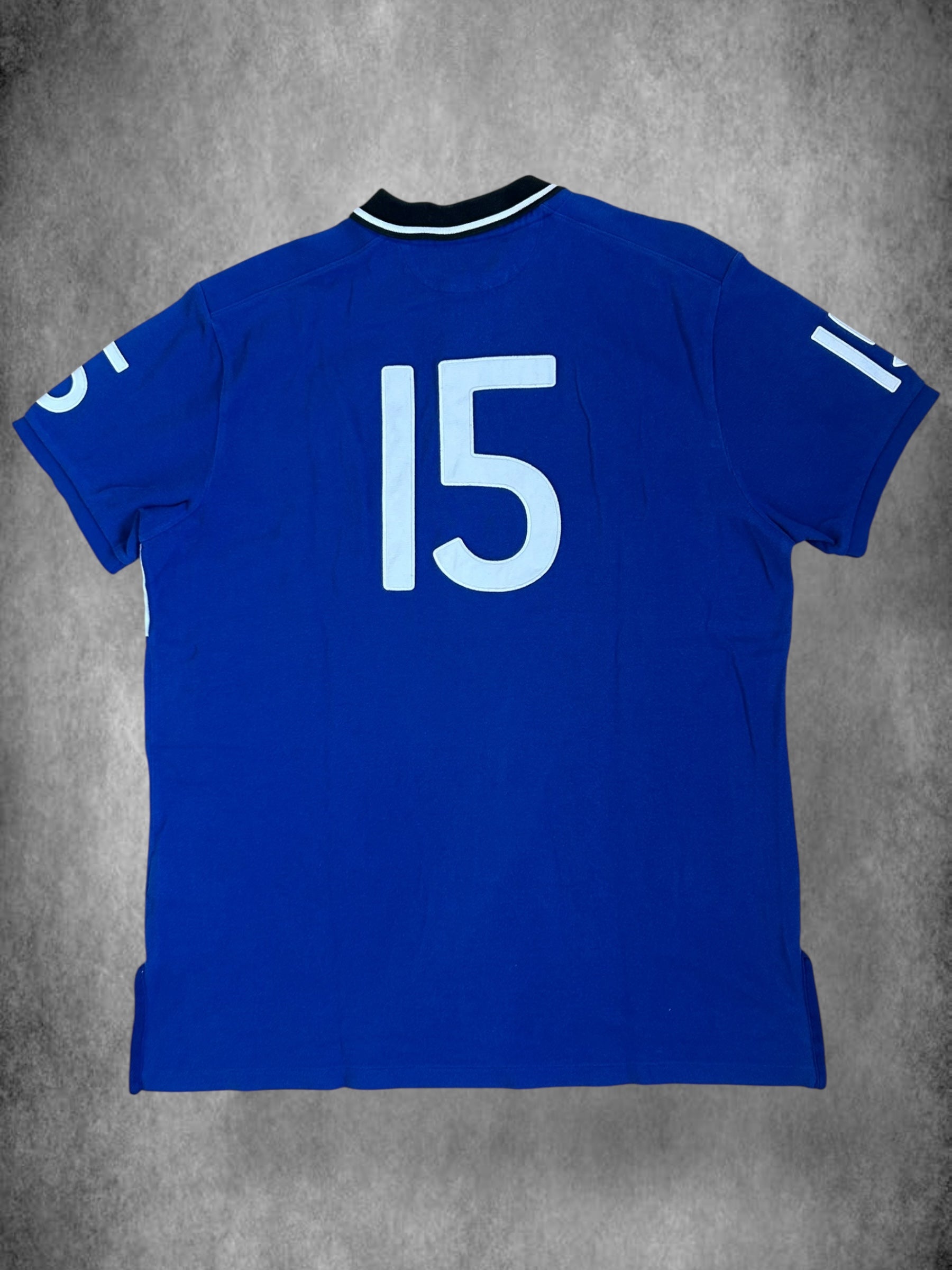 Made from 100% high-quality cotton, it features the Big Pony logo, bold "ITALIA" lettering, an embroidered Italy team crest, and the number 15 on both sleeves—a signature detail in Ralph Lauren’s polo designs. No longer in production, making it a rare and collectible item for Ralph Lauren enthusiasts.