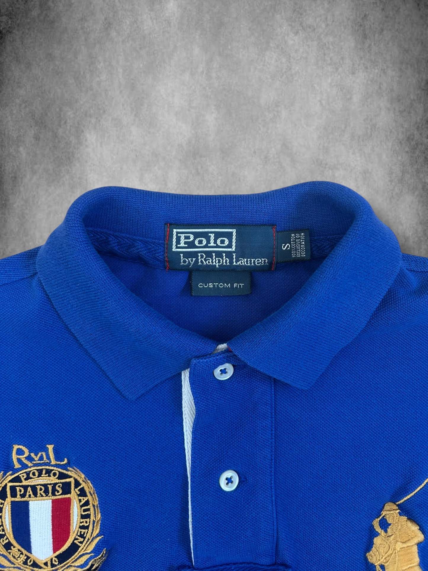 Made from 100% high-quality cotton, it features the Big Pony logo, bold "PARIS" lettering, an embroidered France crest, and the number 5 on both sleeves—a signature detail in Ralph Lauren’s polo designs. No longer in production, making it a rare and collectible item for Ralph Lauren enthusiasts.