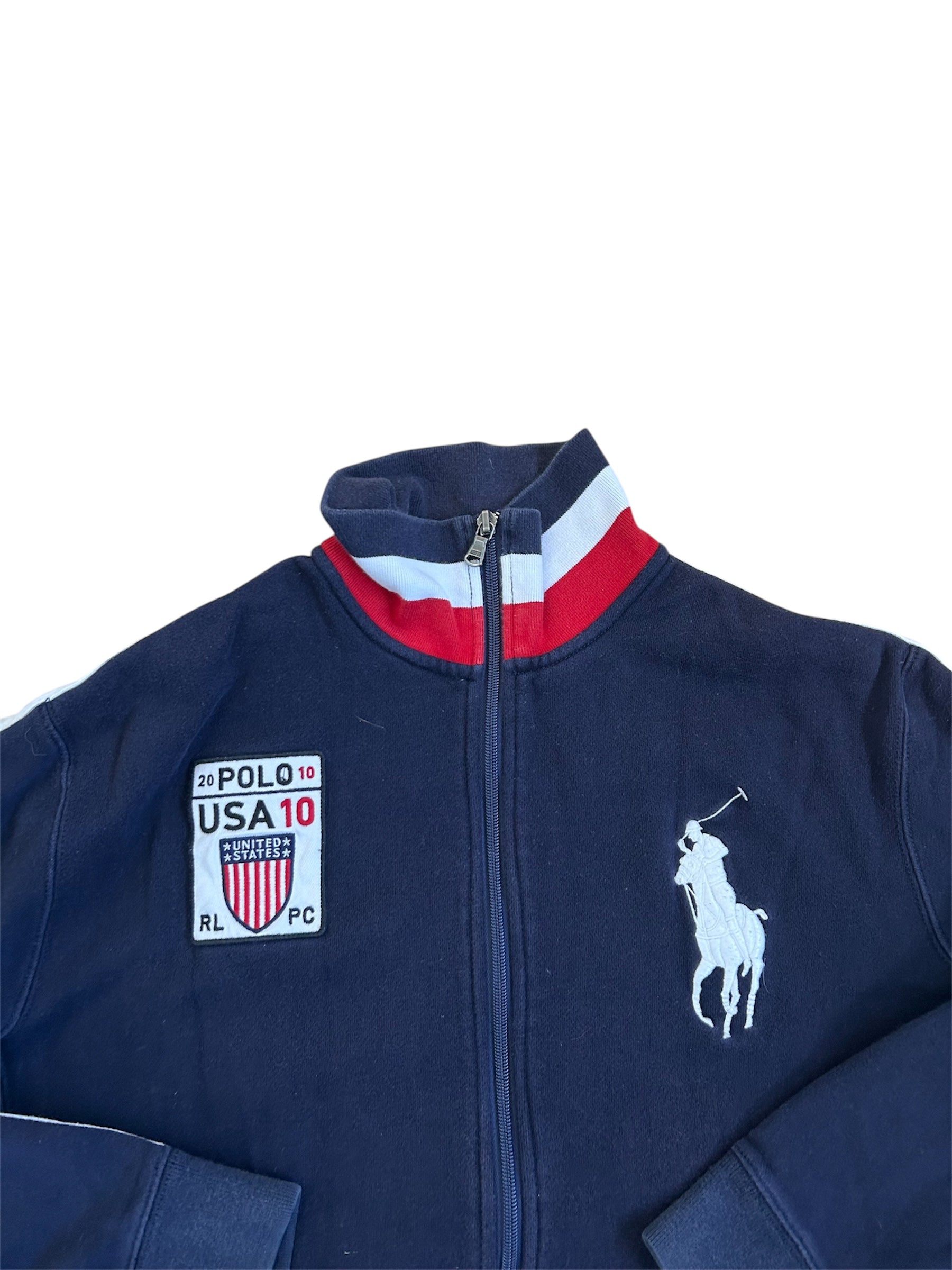 This Ralph Lauren USA Big Pony Track Jacket is a classic piece from the Polo Ralph Lauren International Team Collection, originally released in the 2010s. Designed to represent Team USA, this jacket was available for a limited time at Ralph Lauren stores and select retailers.