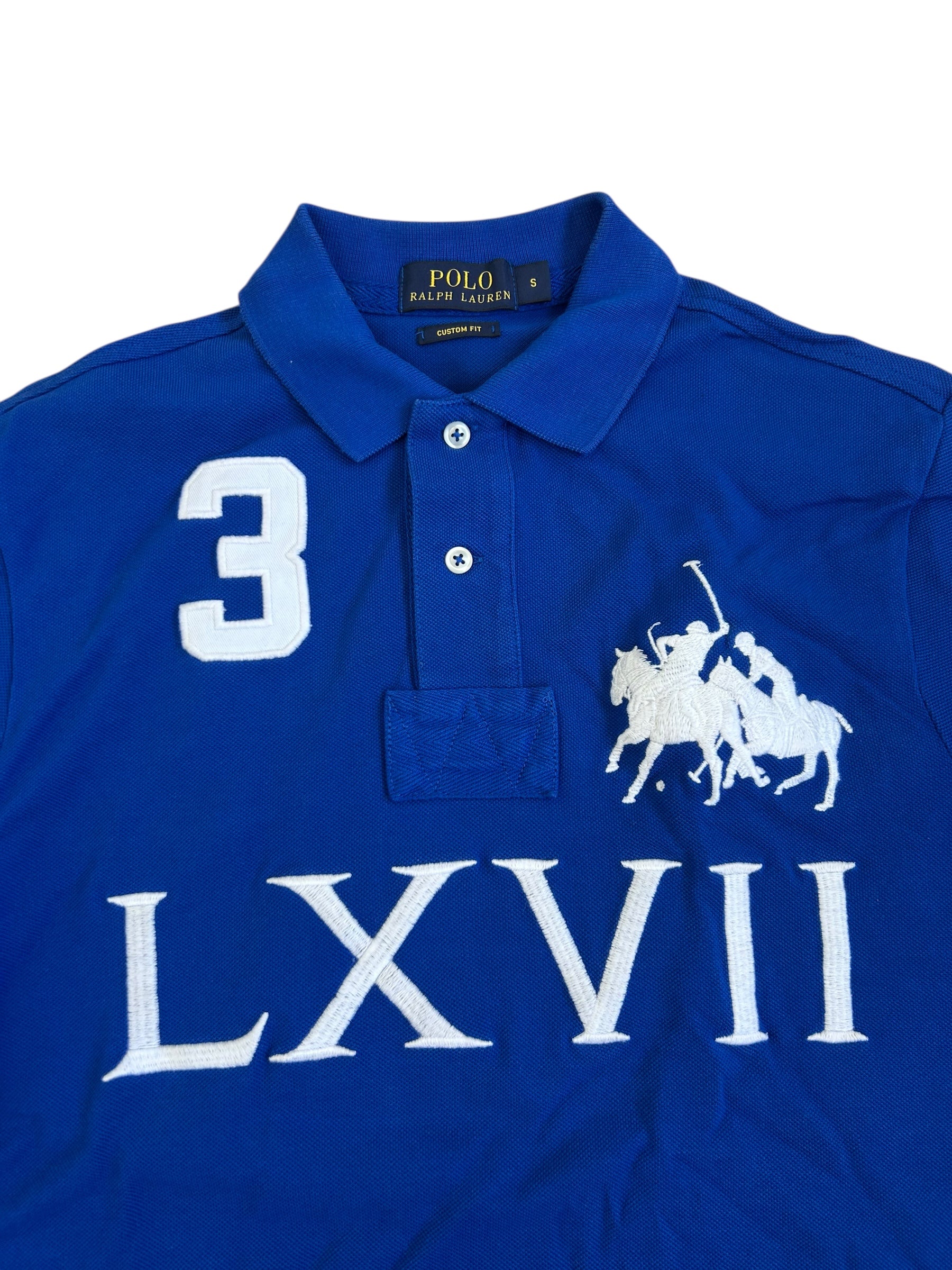 Made from 100% high-quality cotton, it features a distinctive double-polo-player logo, bold “LXVII” Roman numerals across the chest, and the number 3 on the right shoulder. No longer in production, making it a rare and collectible item for Ralph Lauren enthusiasts.