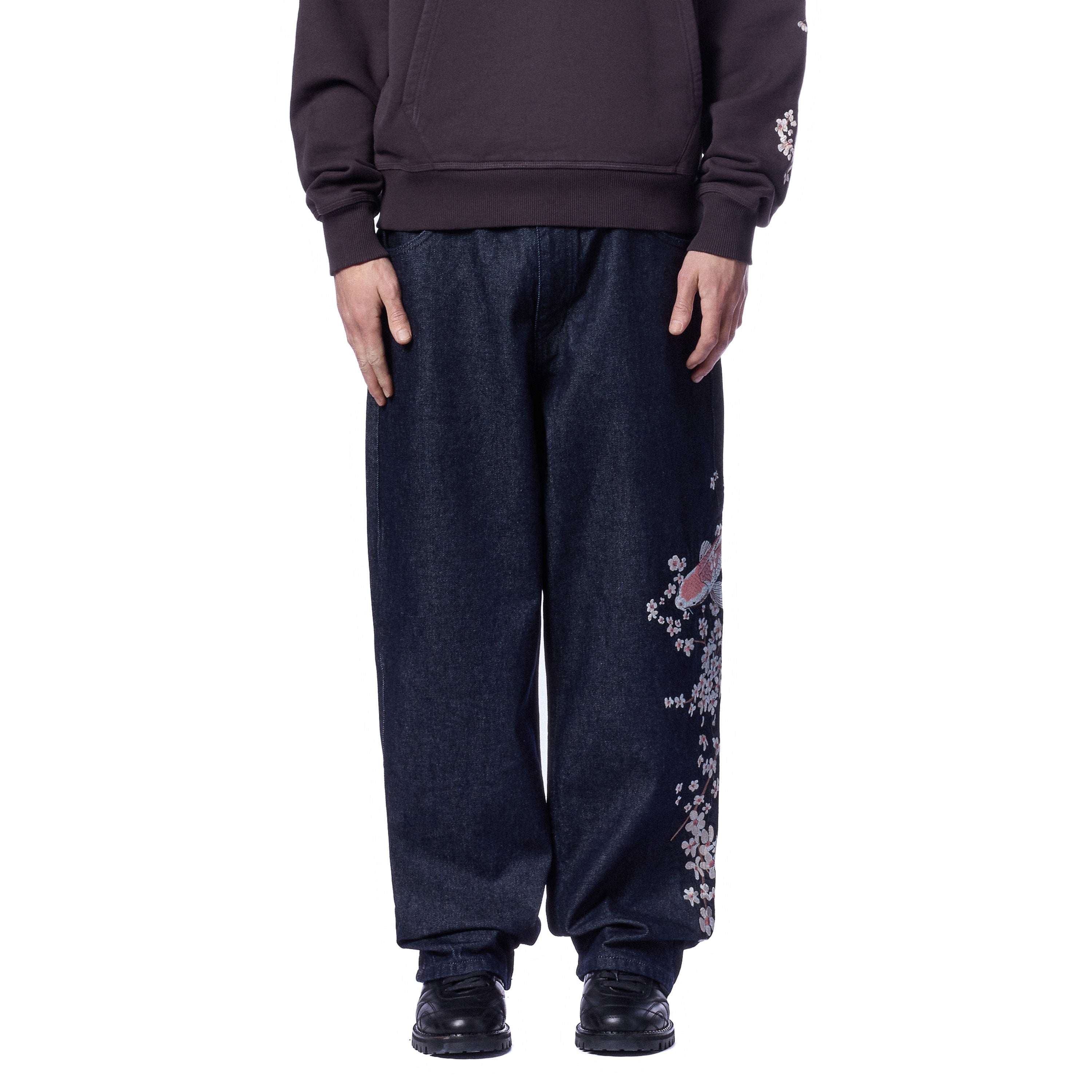 14,5oz denim / 100% cotton / embroidery on front and back / wash inside out / straight fit / fits true to size