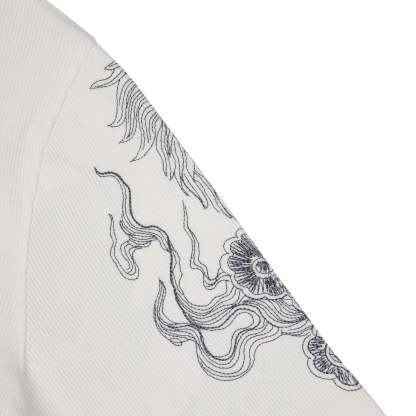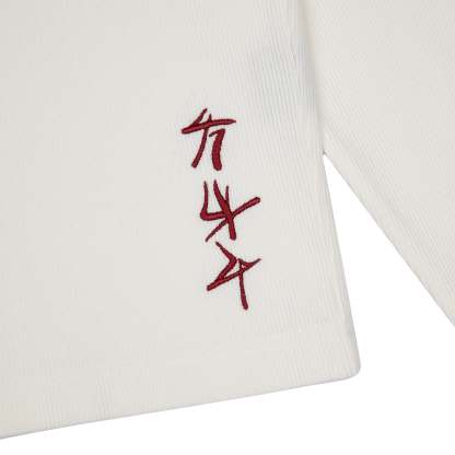 400gsm ribbed cotton / 97% cotton 3% elastane / embroidery on front and sleeve / fits true to size